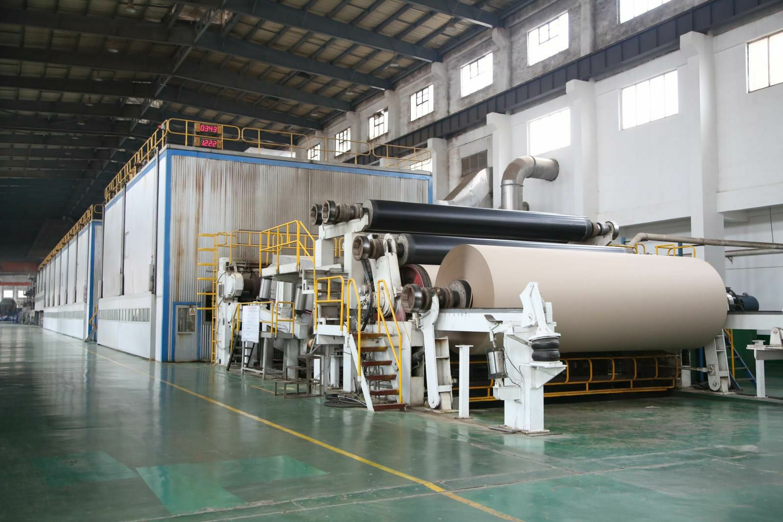 PM5造纸生产线,纸机是美卓(芬兰)制造的先进造纸设备,幅宽6.6米,设计车速1200米/分,目前运行最高车速已达1250米/分。主要生产90-220克的挂面箱板纸,年产量45万吨,带领尊龙网站-尊龙在线(中国)唯一官方网站开启了包装纸生产的新纪元。